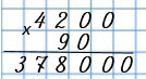 4 200 • 90 - это 42 сот., которые умножили на 9 дес., поэтому умножим 42 на 9, затем дописываем к произведению справа три нуля.