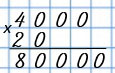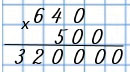 Выполняем действия по алгоритму табличного умножения, не обращая внимания на нули, а затем приписываем в произведении то количество нулей, которое было в конце множителей.