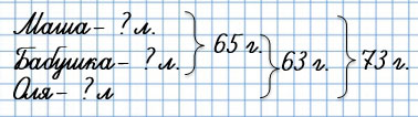 58. Бабушке вместе с внучкой Олей 63 года, а вместе с внучкой Машей 65 лет. Всем им вместе 73 года. Сколько лет каждой из них?