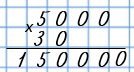5 000 • 30 - это 5 тыс., которые умножили на 3 дес., поэтому умножим 5 на 3, затем допишем к произведению справа четыре нуля.