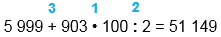 5 999 + 903 • 100 : 2 = 51 149