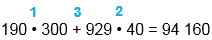 | 190 • 300 + 929 • 40 = 94 160 | |