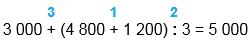 22. 3 000 + (4 800 + 1 200) : 3