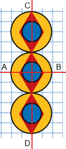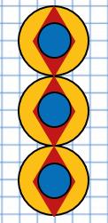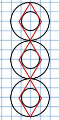3. Расположи ромбы так, чтобы верхний и нижний его углы касались большой окружности, а стороны - маленькой.