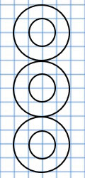 2. Посередине каждой из них расположи окружность с радиусом - 5 мм.