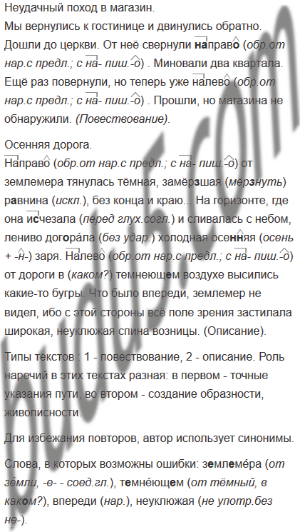 1. Спишите два текста, раскрывая скобки и вставляя пропущенные буквы. В этих текстах встречаются одинаковые наречия. Но одинаковые ли типы речи представлены в том и другом фрагменте? Опираясь на знания о типах речи, объясните роль и место этих слов в предложениях каждого отрывка.