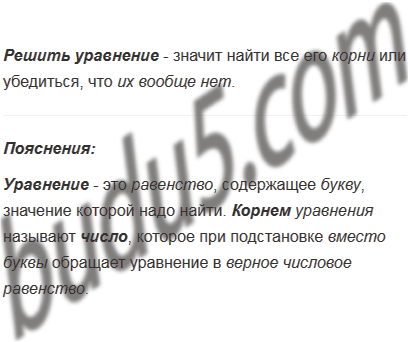 Вспомните, что такое уравнение и какое число называется его корнем.