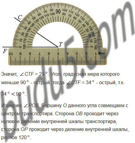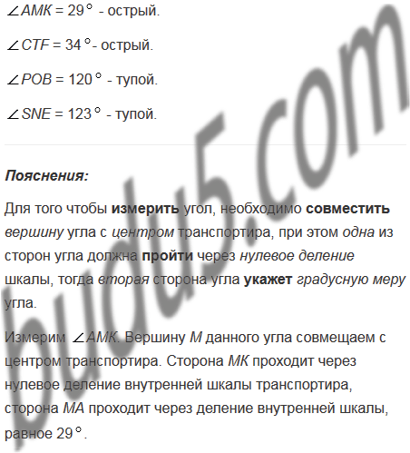 Найдите, пользуясь транспортиром, градусные меры углов, изображенных на рисунке 94. Определите вид каждого угла.