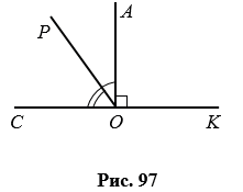 На рисунке 97 угол АОК - прямой, РОС = 540, а угол СОК - развернутый. Вычислите величину угла АОР.