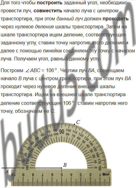 Начертите угол АВС, равный 1060. Лучом ВD разделите этот угол на два угла так, чтобы АВD = 340. Вычислите величину угла DВС.