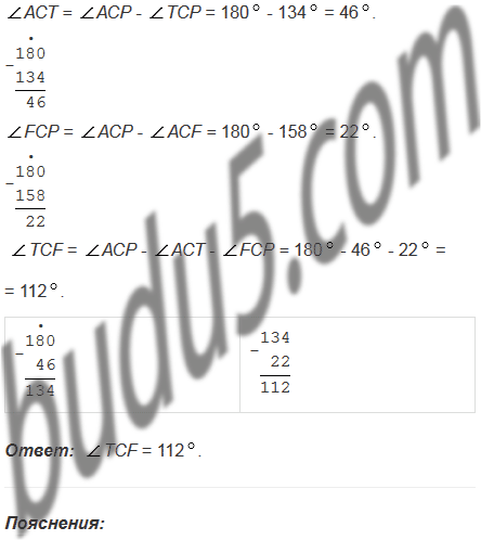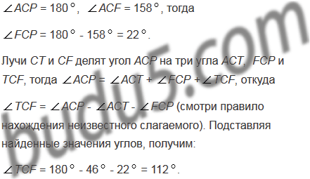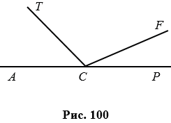 Из вершины развернутого угла АСР (рис. 100) проведены два луча СТ и СF так, что АСF = 1580, ТСР = 1340. Вычислите величину угла ТСF.