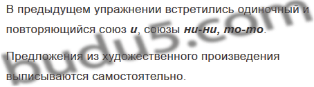 Назовите союзы, которые встретились вам в предыдущем упражнении. Какие ещё союзы вы знаете? Выпишите из художественного произведения, которое вы изучаете на уроках литературы, два предложения с разными союзами. Установите, однородные члены или части сложного предложения соединяет союз в каждом примере.