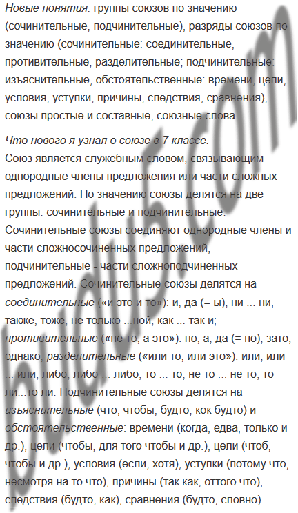 Используя материалы § 32—34, подготовьте сообщение на тему «Что нового я узнал о союзе в 7 классе». Предварнтельно составьте перечень новых понятий, с которыми вы познакомились при изучении темы «Союз».
