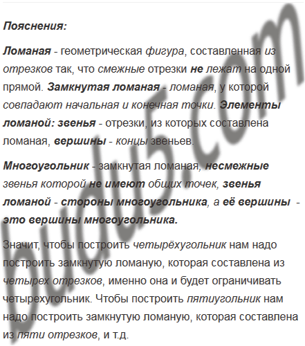 Начертите: 1) четырёхугольник; 2) пятиугольник; 3) шестиугольник; 4) семиугольник.