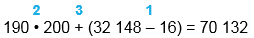 | 190 • 200 + (32 148 - 16) = 70 132 | |