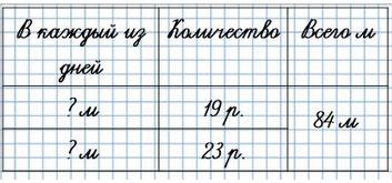 95. В мастерской в первый день сшили 19 одинаковых рюкзаков, во второй - 23 таких рюкзака. На все эти рюкзаки пошло 84 м ткани. Сколько метров ткани расходовали каждый день?