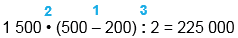 1) 200 • 2 = 400 2) 500 - 400 = 100 3) 1 500 : 100 = 15 |