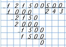 Разделю 2 150 на 500. Для этого разделю 21 на 5, получу 4 - столько десятков будет в частном.