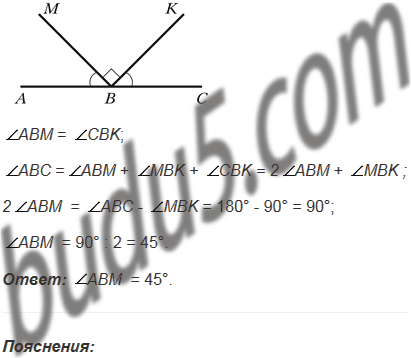 Найдите величину угла АВМ (рис. 141), если MBK - прямой, и ABM = CBK.