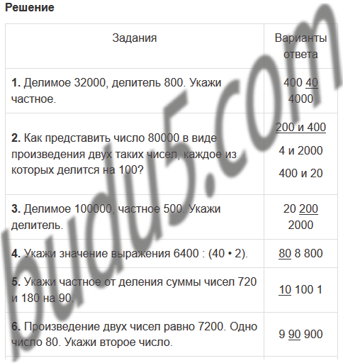 | 1. Делимое 32000, делитель 800. Укажи частное. | 400 40 4000 |