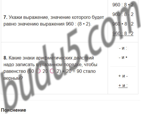 | 7. Укажи выражение, значение которого будет равно значению выражения 960 : (8 • 2). |
