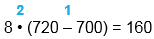 1) 720 - 700 = 20 2) 8 • 20 = 160 |