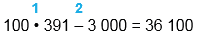 1) 100 • 391 = 39 100 2) 39 100 - 3 000 = 36 100 |