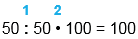50 : 50 • 100 = 100