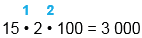 1) 15 • 2 = 30 2) 30 • 100 = 3 000 |