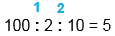 1) 100 : 2 = 50 2) 50 : 10 = 5 |