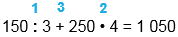 150 : 3 + 250 • 4 = 1 050