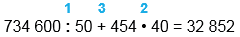 734 600 : 50 + 454 • 40 = 32 852