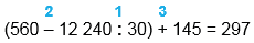 (560 - 12 240 : 30) + 145 = 297