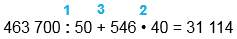463 700 : 50 + 546 • 40 = 31 114
