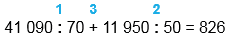 41 090 : 70 + 11 950 : 50 = 826
