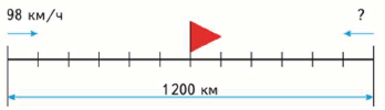 Из двух городов, расстояние между которыми 1 200 км, вышли два поезда навстречу друг другу и встретились через 6 ч. Первый двигался со скоростью 98 км/ч. Найди скорость второго поезда.