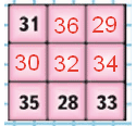 35 + 28 + 33 = 96 - сумма в каждом столбце, в каждой строке и из угла в угол.