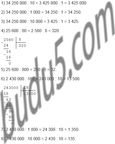4) 25 600 : 80; 8) 2 430 000 : 18 000.