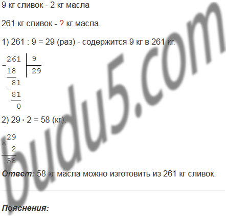 Сколько килограммов масла можно изготовить из 261 кг сливок, если из 9 кг сливок получается 2 кг масла?