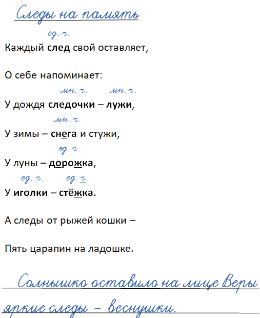 У дождя следочки (ед. ч.) – лужи (мн. ч.),