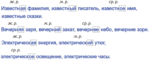 • Почему одно и то же имя прилагательное в каждой группе словосочетаний имеет разные окончания?