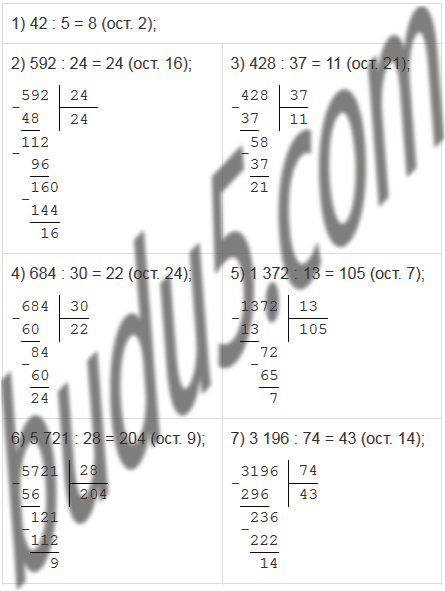 1) 42 : 5; 4) 684 : 30; 7) 3 196 : 74;