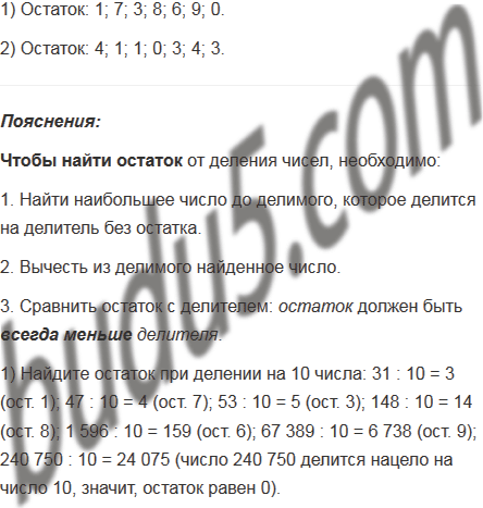 1) Найдите остаток при делении на 10 числа: 31; 47; 53; 148; 1 596; 67 389; 240 750.