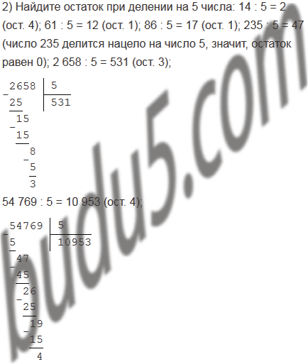 2) Найдите остаток при делении на 5 числа: 14; 61; 86; 235; 2 658; 54 769; 687 903.