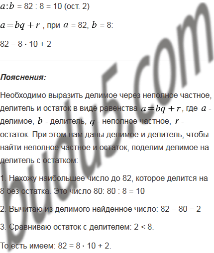 Выразите делимое через неполное частное, делитель и остаток в виде равенства