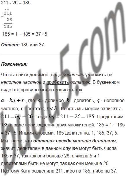 Катя разделила 211 на некоторое число и получила в остатке 26. На какое число делила Катя?