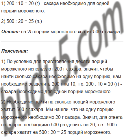 Для приготовления десяти порций мороженого используют 200 г сахара. На сколько порций мороженого хватит 500 г сахара?
