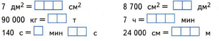 | 7 дм2 = 700 см2 | 8700 см2 = 87 дм2 |