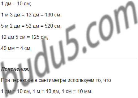 Сколько сантиметров содержится в: 1 дм; 1 м 3 дм; 5 м 2 дм; 12 дм 5 см; 40 мм?