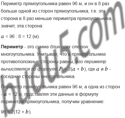 Периметр прямоугольника равен 96 м, и он в 8 раз больше одной из сторон прямоугольника. Найдите площадь прямоугольника.